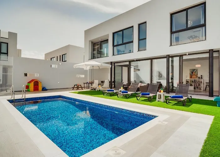 Sunnyvillas: 3Br New Villa☆Private Pool In Pernera ligger 6 km fra Ayia Napa-klostret og repræsenterer en 3 værelsers indkvartering med en terrasse. Som ekstra er der køkkenudstyr og en vaskemaskine i et køkken og separat toilet og en bruser på badeværelset.